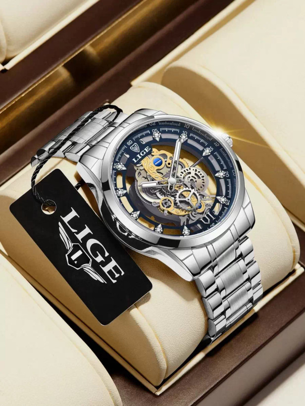 ساعت مردانه LIGE با طراحی اسکلتون (توخالی) – عقربه گرد و قاب مستحکم